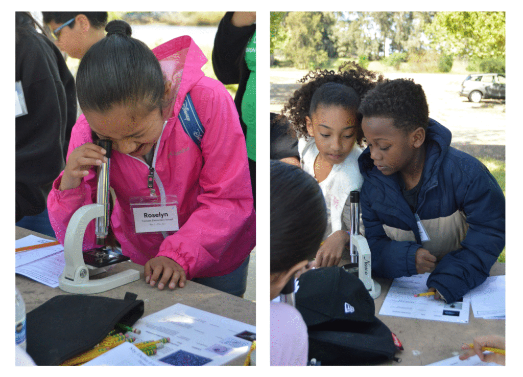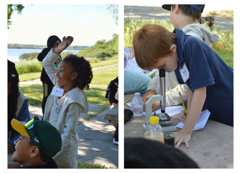 “We’re going to be investigating plankton from the slough!” announced Ms. Anais. “Which organism is at the beginning of most food chains?” she asked. “Plankton!” exclaimed Heily. Using field microscopes, students examined slides containing a few drops from a water sample that KftB Educators collected from the slough earlier that morning. Students made notes in their field journals and drew the different types of phytoplankton and zooplankton they observed. “I see a bunch of things moving around in there! I didn’t know that a single drop of water could contain so much life!” said Mario. “I saw a bunch of little creatures swimming around,” confirmed Ja’Dahya.